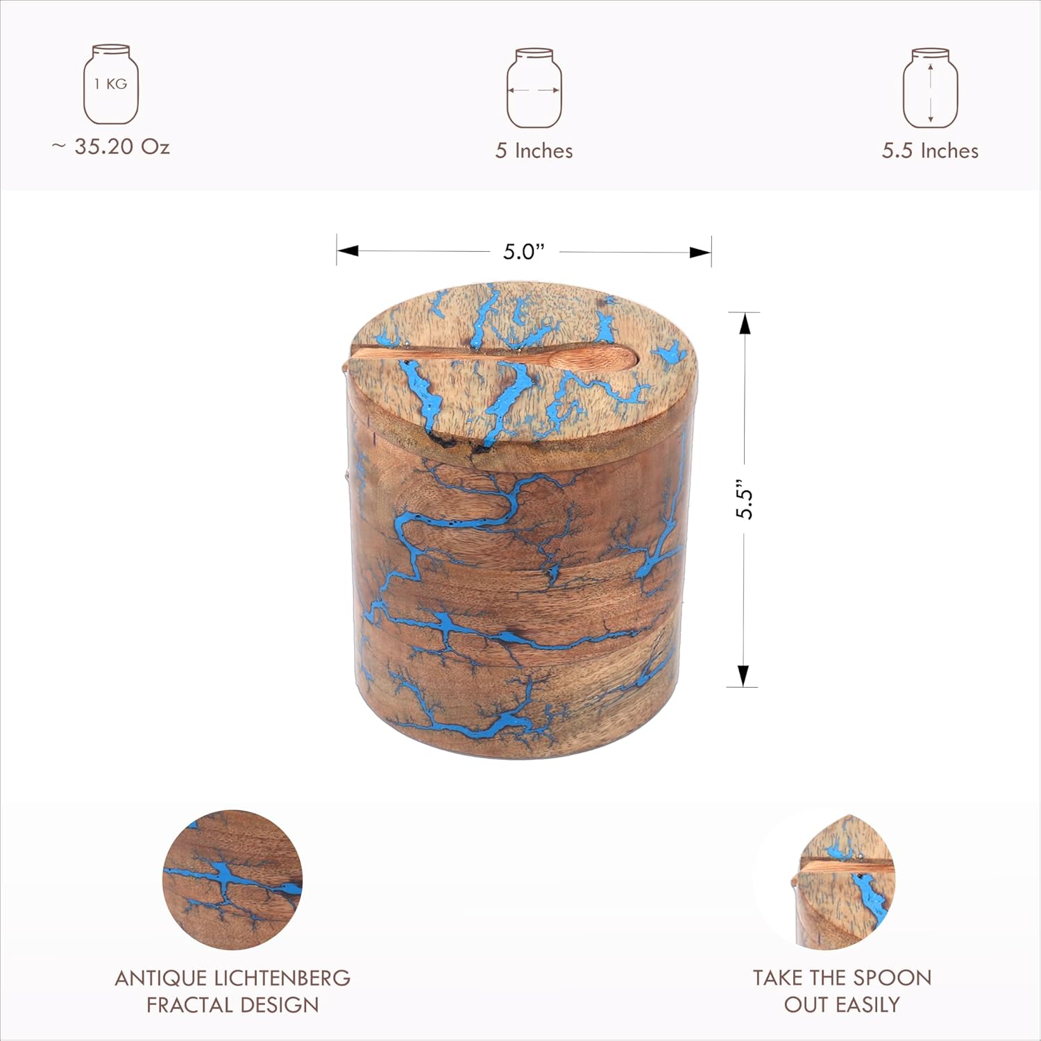 | Other Special Features of the Product | Easy Open Lid, Fractal Design, Handcrafted, Magnetic Closure, Spoon Storage |